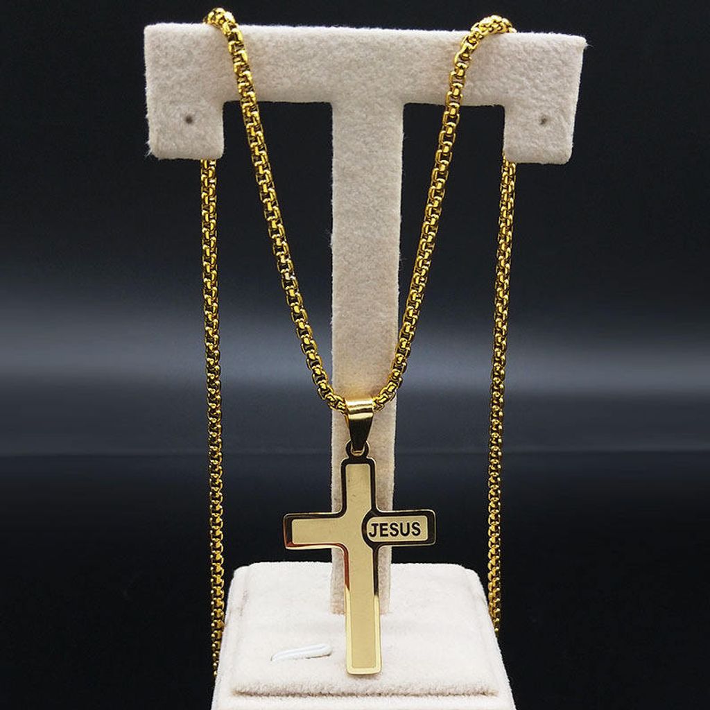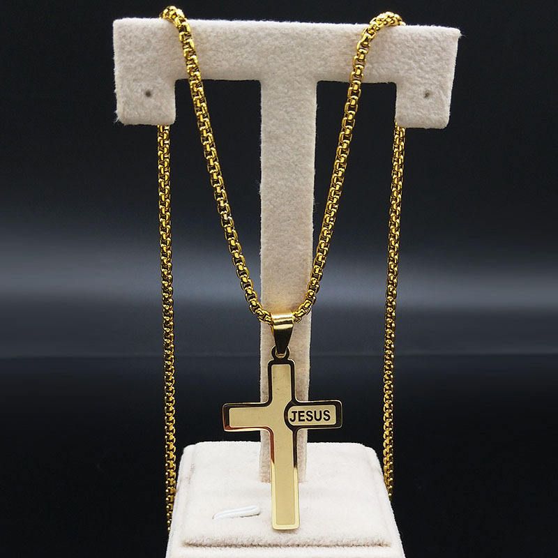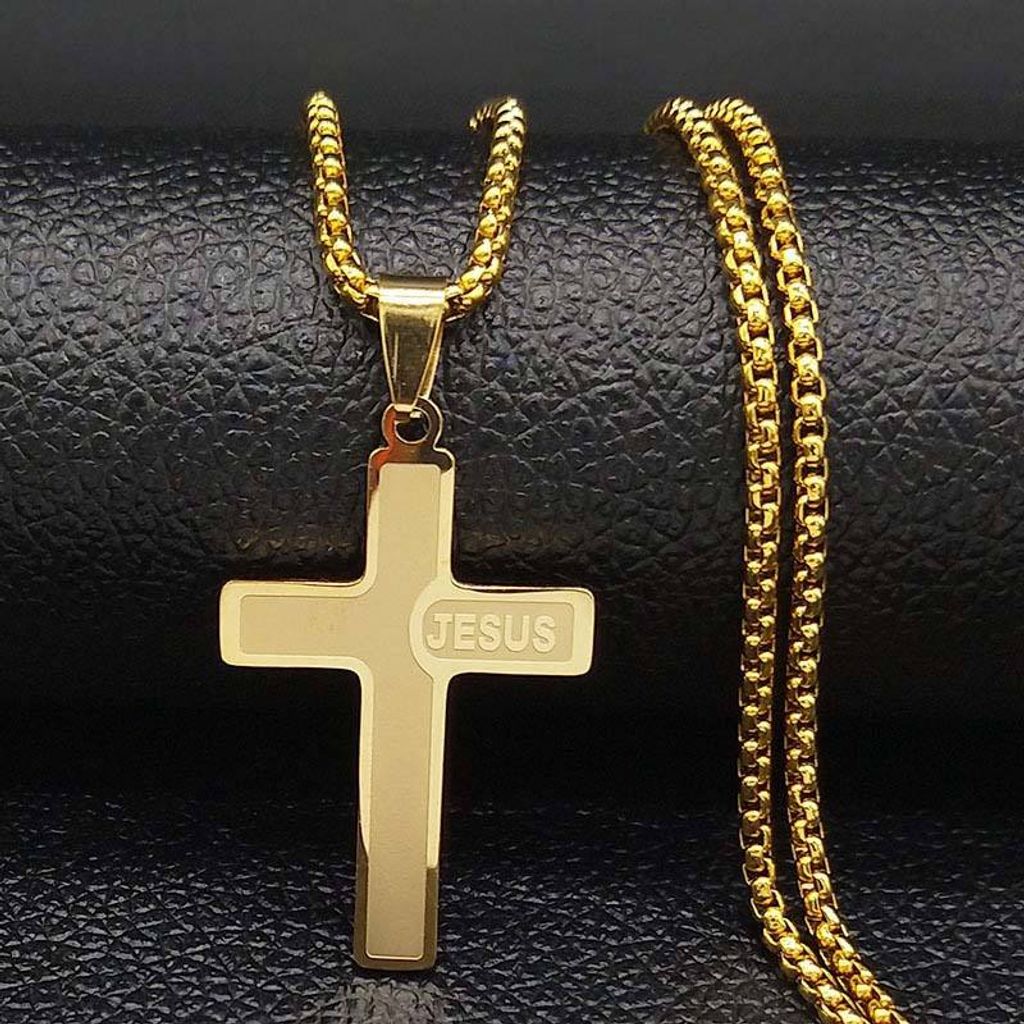 Colar Religioso de Cruz em Aco Inoxidavel para Homens e Mulheres