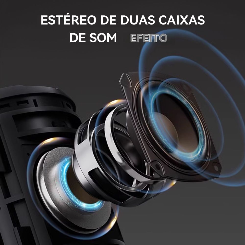 Alto-falante de 40W com graves profundos e áudio estéreo de alta qualidade.