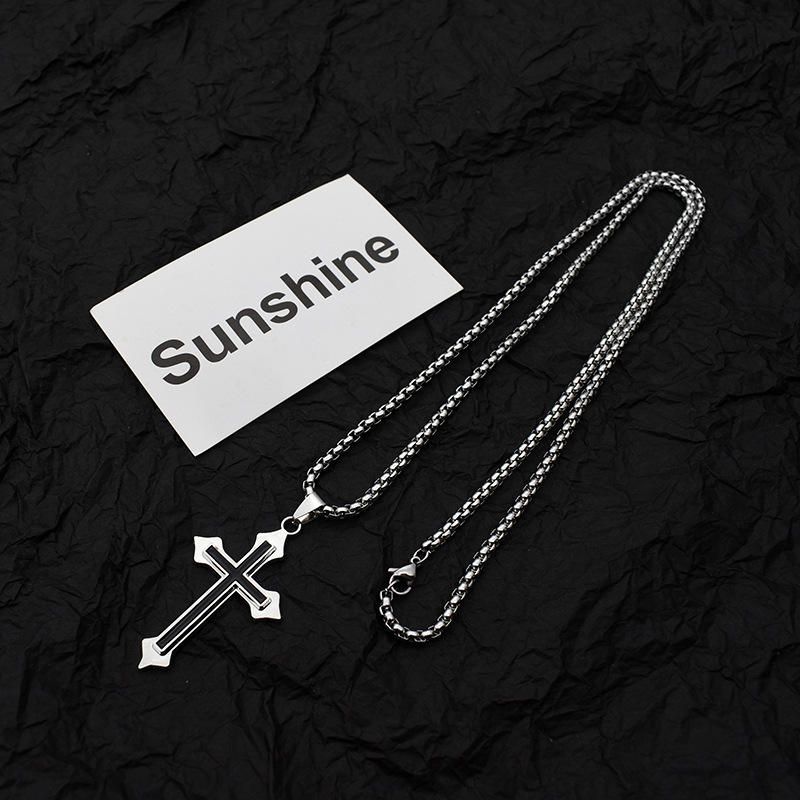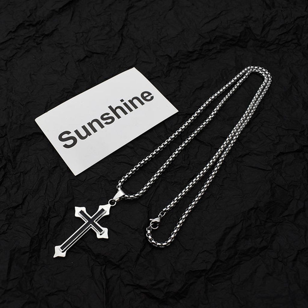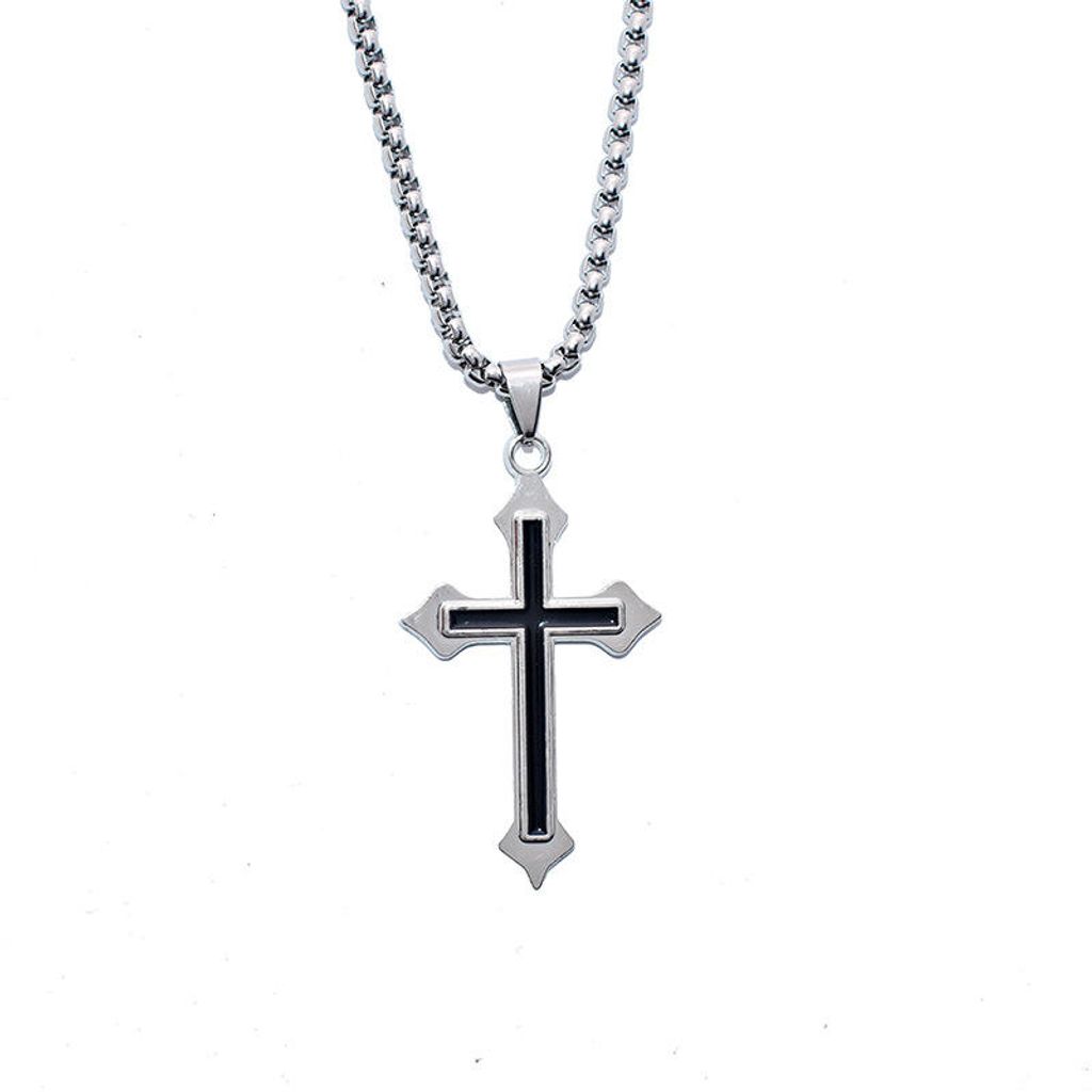 Trendy Stainless Steel Cross Pendant Necklace for Men and Women Silver Color
